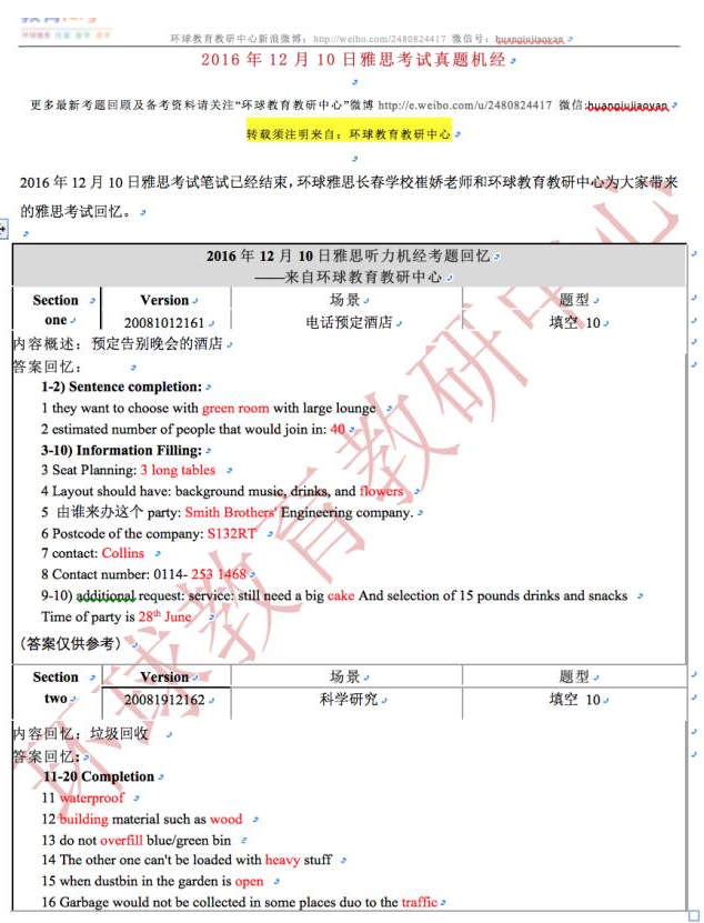 环球教育教研中心的老师此次为大家来“2016年12月10日雅思听力考试真题回忆+答案”,希望对大家有所帮助。