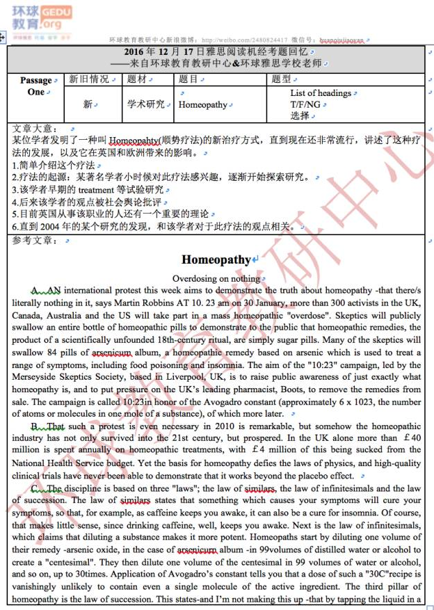 环球教育教研中心的老师此次为大家来“2016年12月17日雅思阅读考试真题回忆+答案”,希望对大家有所帮助。