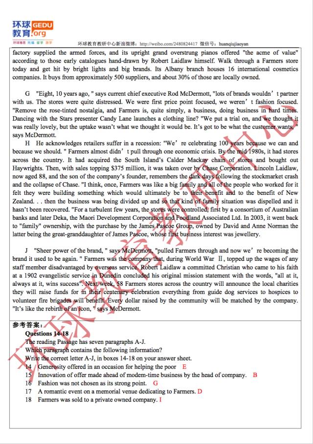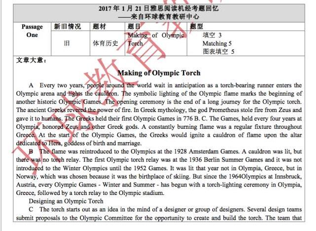 以上就是由环球教育教研中心一线名师们为同学们整理的2017年1月21日最新雅思阅读考试机经及答案的全部内容,更多雅思机经下载、雅思考试、雅思备考复习计划、雅思培训以及雅思考试技巧等相关信息请持续关注环球教育雅思频道!