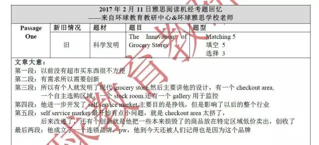 以上就是由环球教育教研中心一线名师们为同学们整理的2017年2月11日最新雅思阅读考试机经及答案的全部内容,更多雅思机经下载、雅思考试、雅思备考复习计划、雅思培训以及雅思考试技巧等相关信息请持续关注环球教育雅思频道!
