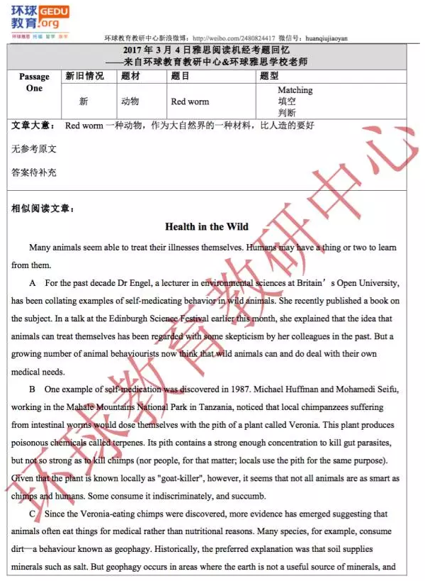 环球教育(原环球教育)教研中心的名师们此次为大家送上2017年3月4日雅思阅读考试回忆及答案,希望对大家备考雅思有所帮助!