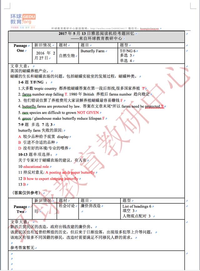 以上就是由环球教育教研中心一线名师们为同学们整理的2017年5月13日最新雅思阅读考试机经及答案的全部内容,更多雅思机经下载、雅思考试、雅思备考复习计划、雅思培训以及雅思考试技巧等相关信息请持续关注环球教育雅思频道!