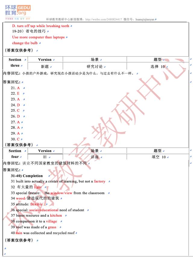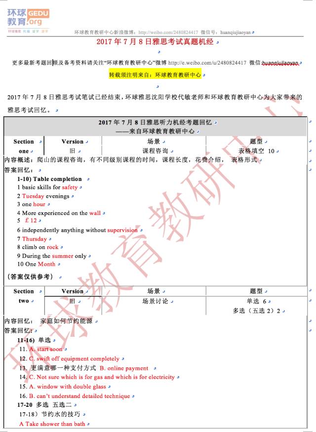 以上就是由环球教育教研中心一线名师们为同学们整理的2017年7月8日最新雅思听力考试机经及答案的全部内容,更多雅思机经下载、雅思试题、雅思备考复习计划、雅思培训以及雅思考试技巧等相关信息请持续关注环球教育雅思频道!