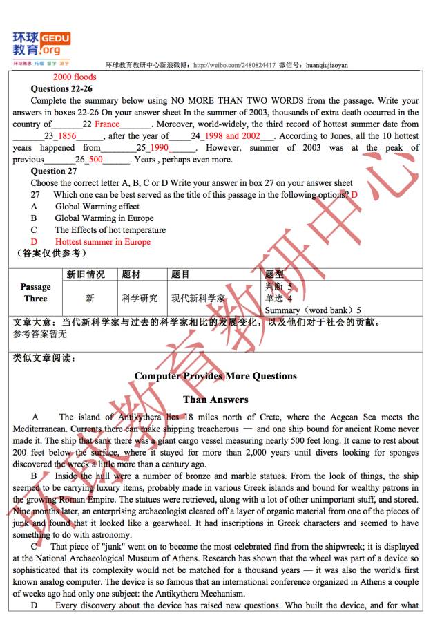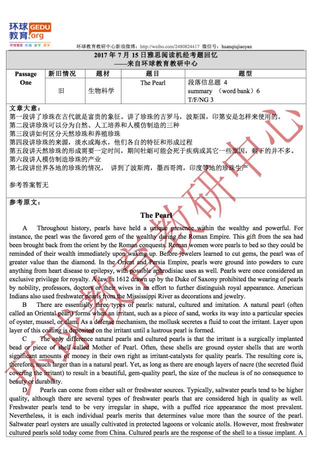 以上就是由环球教育教研中心一线名师们为同学们整理的2017年7月15日最新雅思阅读考试机经及答案的全部内容,更多雅思机经下载、雅思考试、雅思备考复习计划、雅思培训以及雅思考试技巧等相关信息请持续关注环球教育雅思频道!
