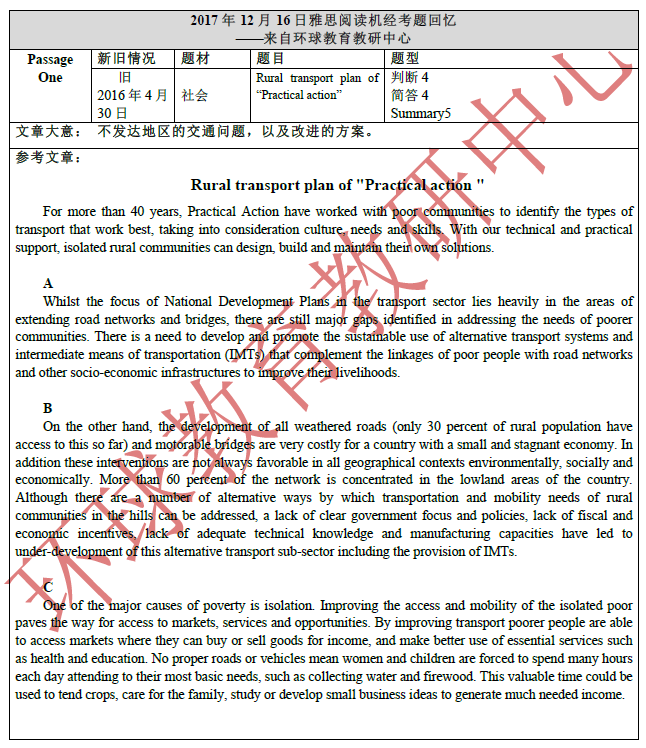 环球教育教研中心的名师们此次为大家送上2017年12月16日雅思阅读考试回忆及答案,希望对大家备考雅思有所帮助!