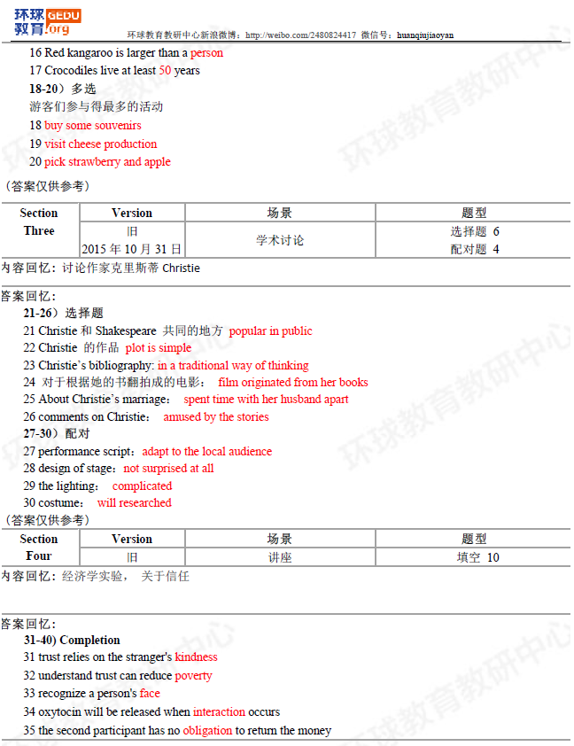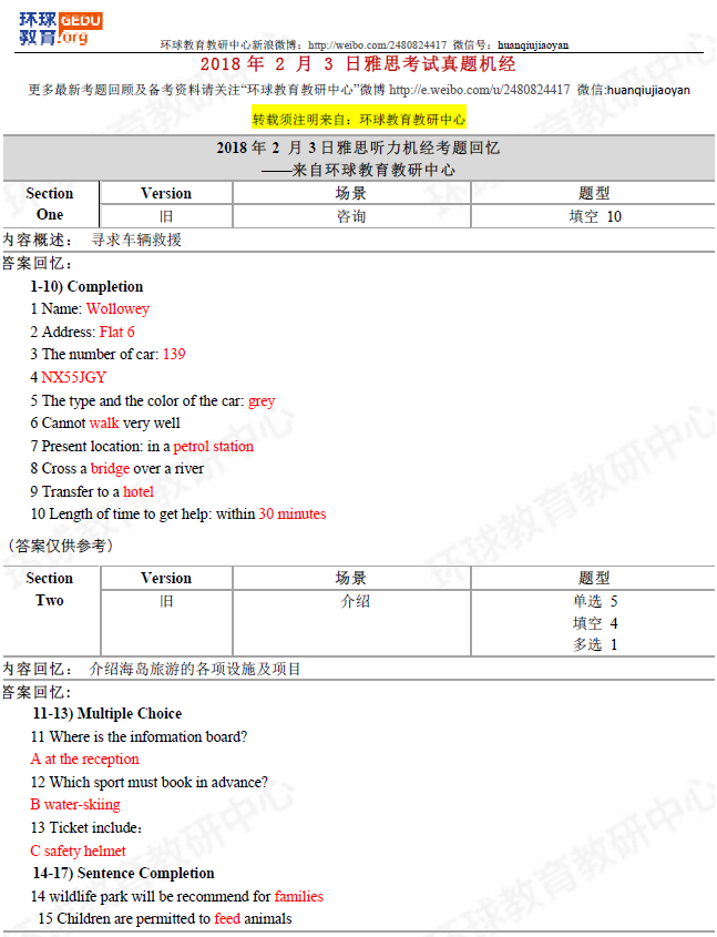 环球教育教研中心的名师们此次为大家送上2018年2月3日雅思听力考试回忆及答案,希望对大家备考雅思有所帮助!