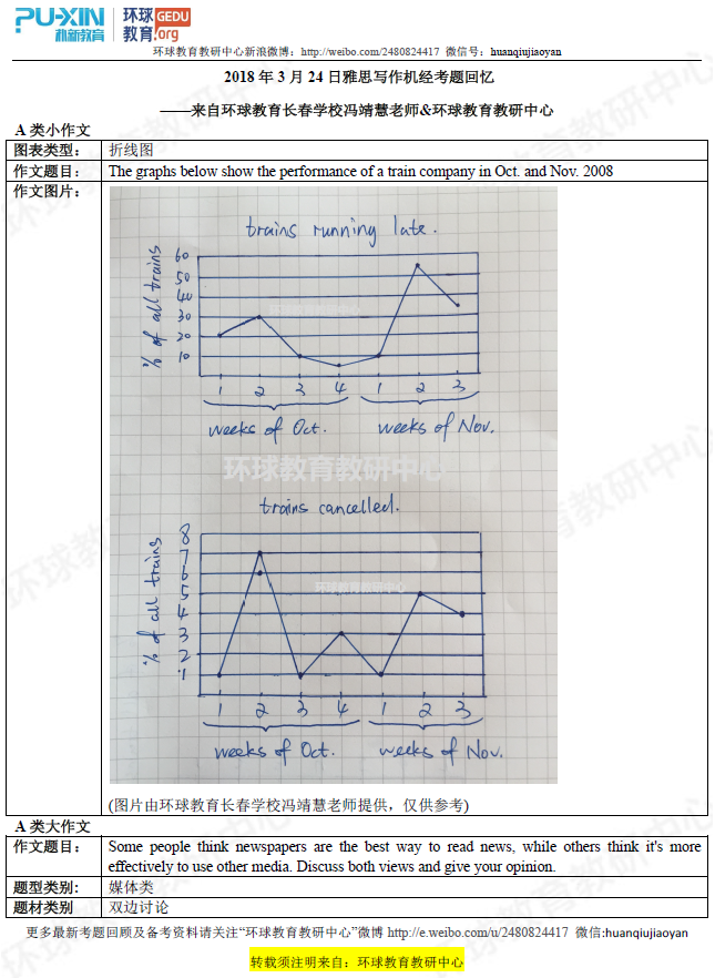 环球教育教研中心的名师们此次为大家送上2018年3月24日雅思写作考试回忆,希望对大家备考雅思有所帮助!