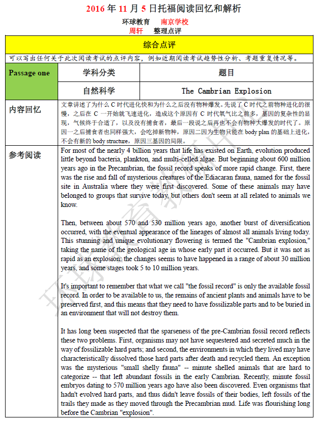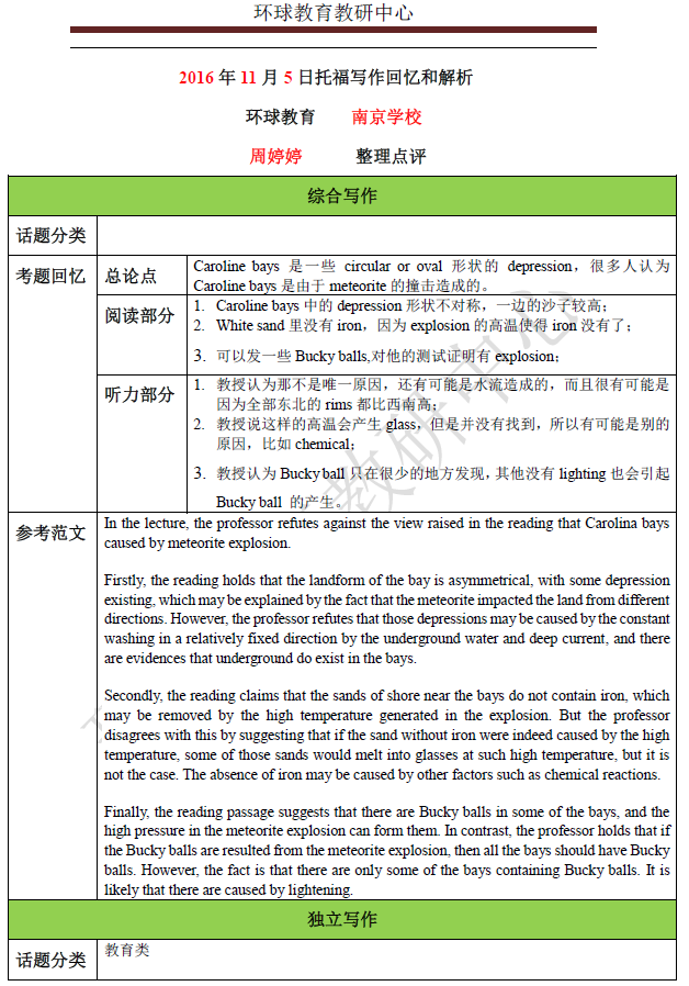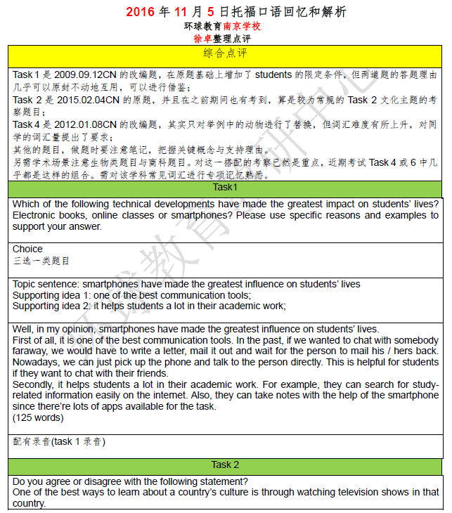 环球教育(原环球教育)教研中心为大家整理了11月5日托福考题全部内容:听、说、读、写完整回忆和解析,希望能帮大家更上一层楼。